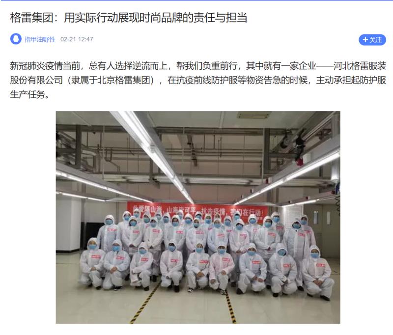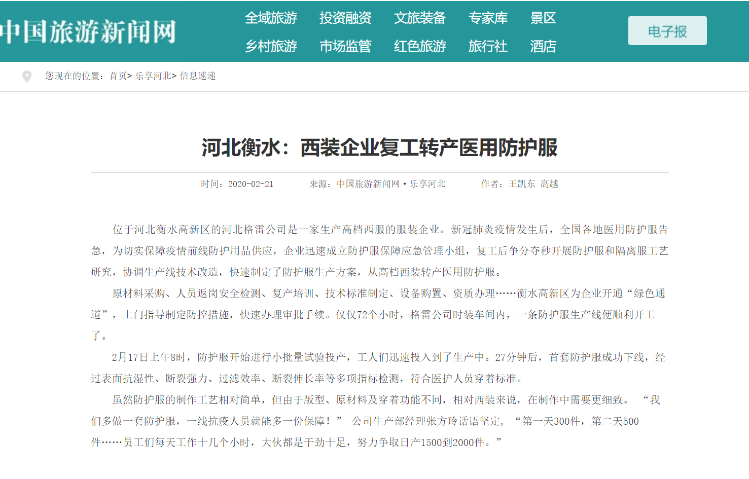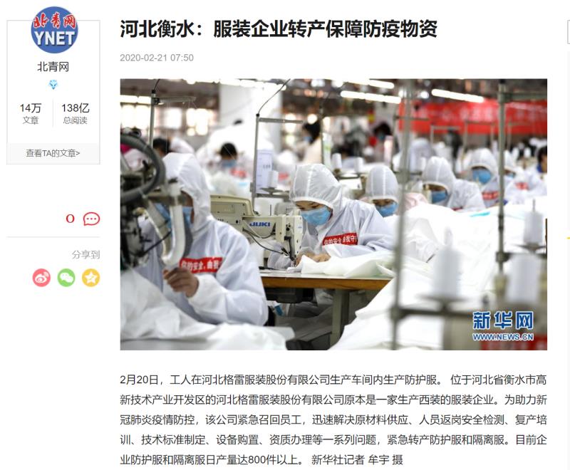 在各級(jí)政府的大力支持和幫扶下,河北格雷緊急調(diào)和各項(xiàng)資源,耗時(shí)近一個(gè)月,以高效的速度完成了十萬(wàn)級(jí)潔凈車間建設(shè),這不僅標(biāo)志著河北格雷醫(yī)療業(yè)務(wù)煥新?lián)P帆起航,也標(biāo)志著河北格雷完成了由服裝制造業(yè)務(wù)一枝獨(dú)秀到服裝、醫(yī)療二大業(yè)務(wù)齊頭發(fā)展的新轉(zhuǎn)變!