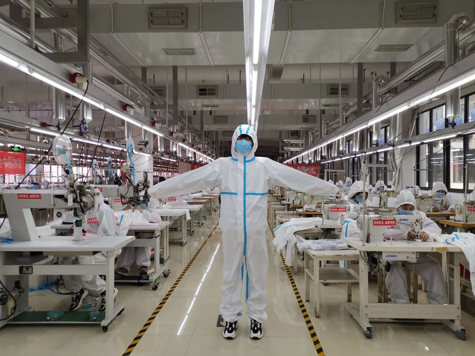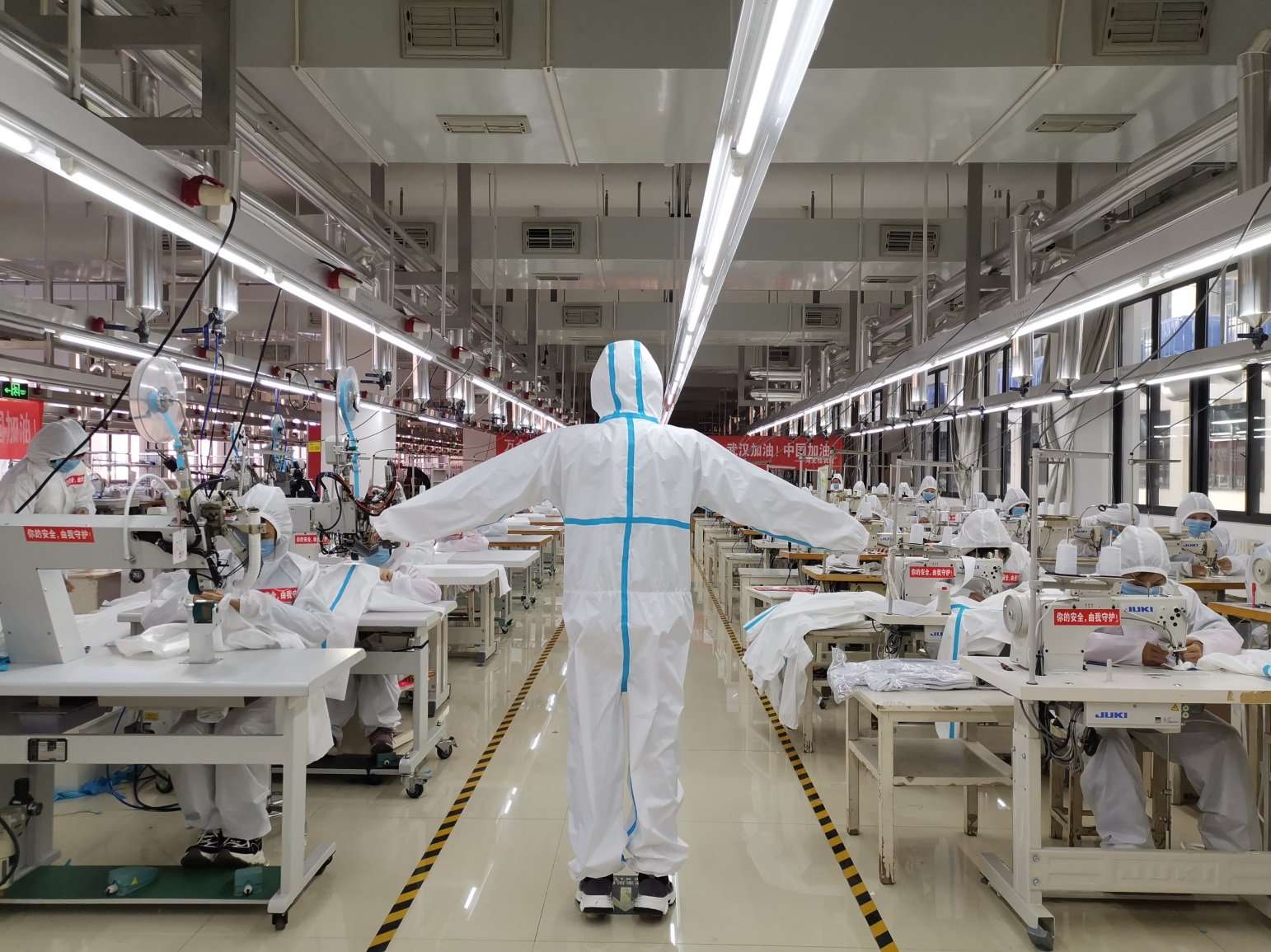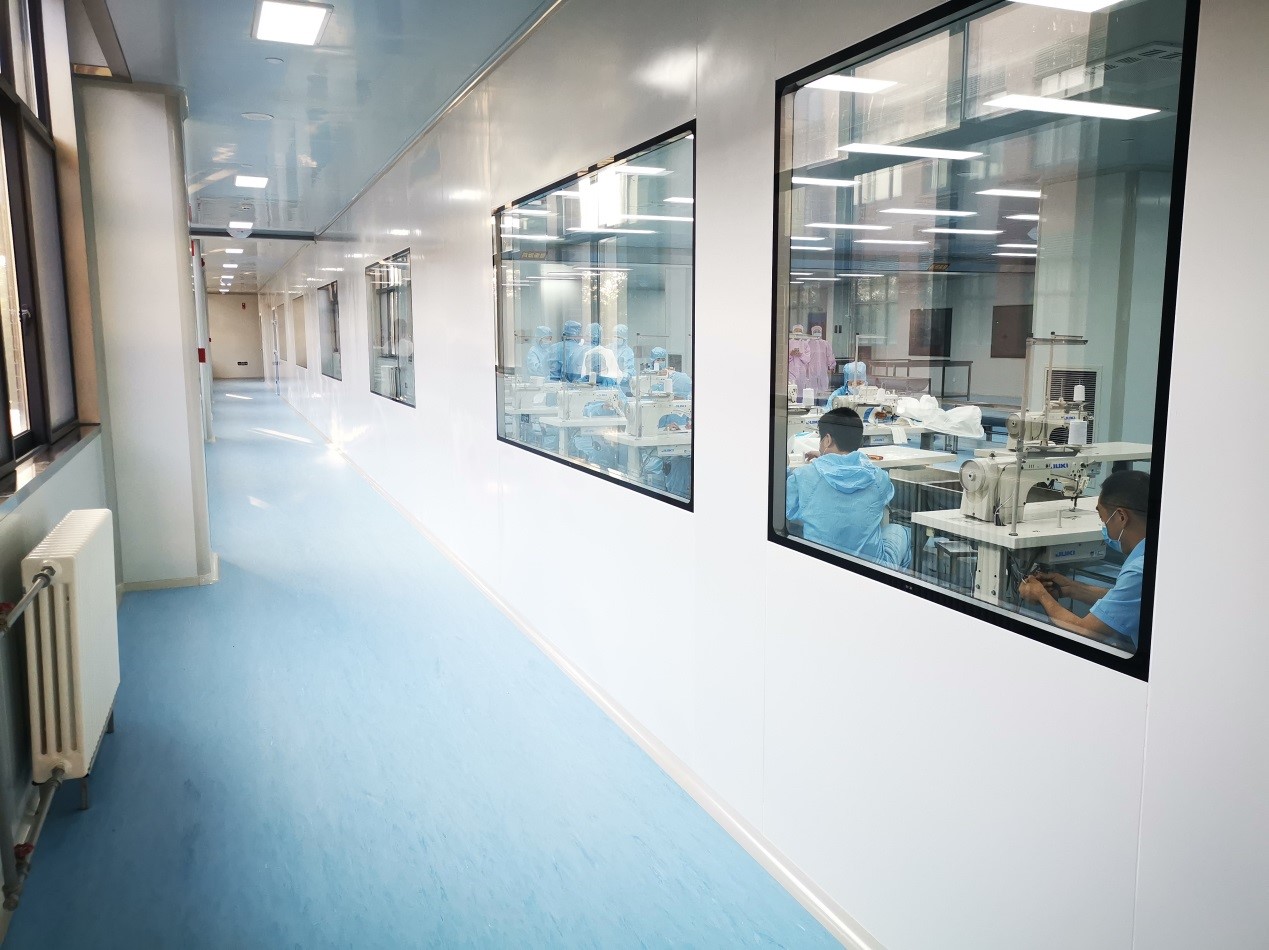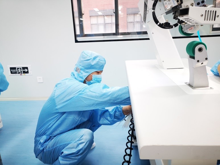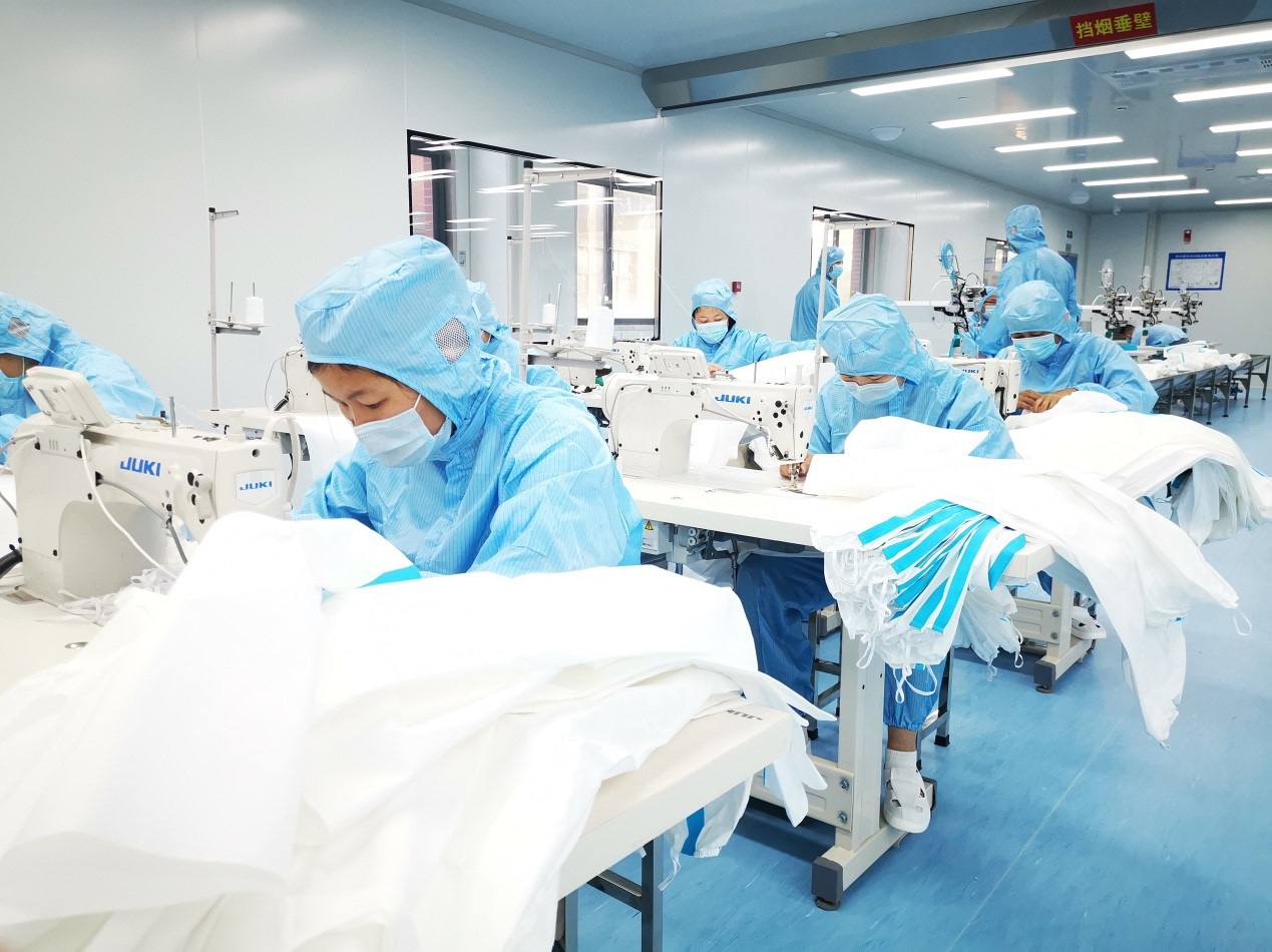 2020年7月7日,1200平10萬(wàn)級(jí)潔凈車間開(kāi)放投產(chǎn)。當(dāng)天早上6:00,第一臺(tái)用于防護(hù)服生產(chǎn)機(jī)器進(jìn)入無(wú)菌車間,經(jīng)過(guò)基礎(chǔ)調(diào)試后,車間開(kāi)始了緊張的生產(chǎn),12分鐘后,第一件防護(hù)服正式下線。
